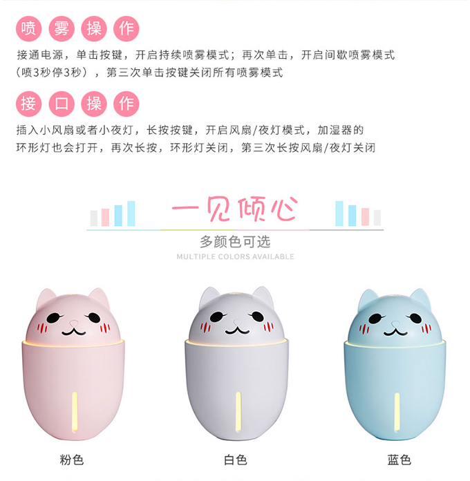 買了好久了,用了幾次覺(jué)得挺好的,性比價(jià)高,特別萌,主要是真的沒(méi)有聲音,晚上睡覺(jué)特別安靜,而且噴霧特別細(xì)膩