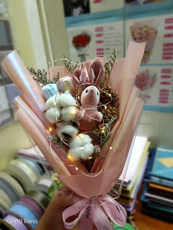 花束很精致,包裝好的,兔子看著也可愛,加上自己的小夜燈,夜間效果應(yīng)該更美,不錯(cuò)的商品