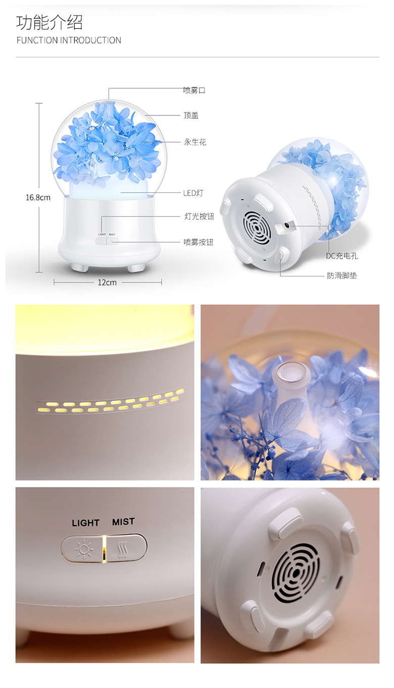 永生花本身就比較貴,還加上了加濕和香薰的功能,這個價位真是太實惠了,不用的時候也可以當(dāng)燈來使用,好評