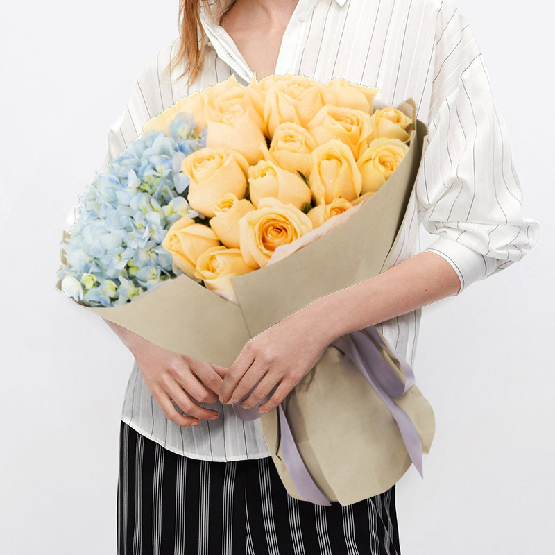 由于鮮花包扎的花藝師不同,可能在花束的形式和搭配上與圖片略有小的區(qū)別,但我們保證鮮花的主花材品種、新鮮程度、數(shù)量、顏色與說(shuō)明一致,感謝您的理解。