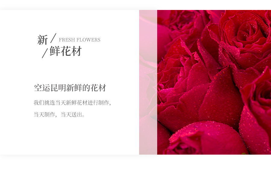 由于鮮花包扎的花藝師不同,可能在花束的形式和搭配上與圖片略有小的區(qū)別,但我們保證鮮花的主花材品種、新鮮程度、數(shù)量、顏色與說(shuō)明一致,感謝您的理解。