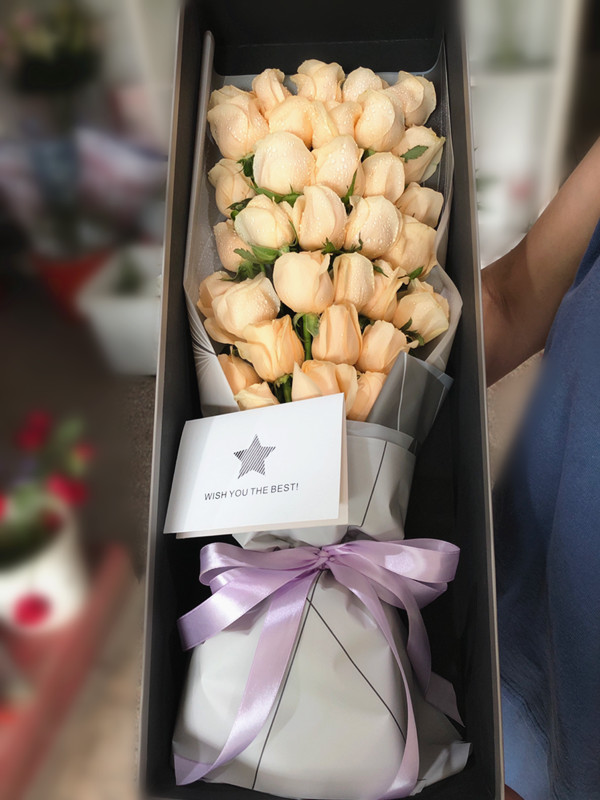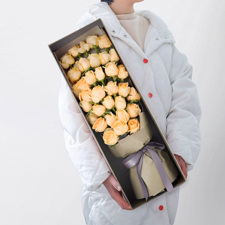 暖暖的美好·33枝香檳玫瑰槍炮禮盒
