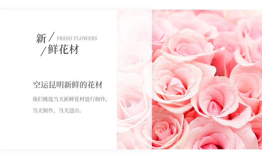 由于鮮花包扎的花藝師不同,可能在花束的形式和搭配上與圖片略有小的區(qū)別,但我們保證鮮花的主花材品種、新鮮程度、數(shù)量、顏色與說(shuō)明一致,感謝您的理解。
