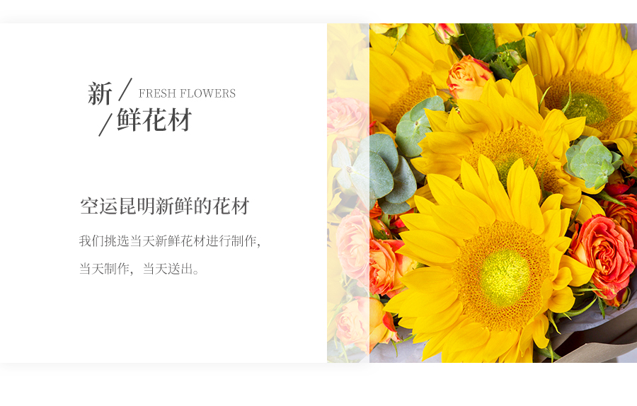 由于鮮花包扎的花藝師不同,可能在花束的形式和搭配上與圖片略有小的區(qū)別,但我們保證鮮花的主花材品種、新鮮程度、數(shù)量、顏色與說明一致,感謝您的理解。