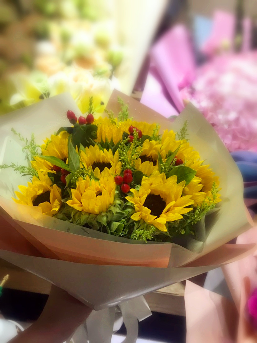 第一次在網(wǎng)上買(mǎi)花,女朋友說(shuō)向日葵很漂亮,包裝很好,相思豆的搭配確實(shí)錦上添花,很滿意!她很喜歡。