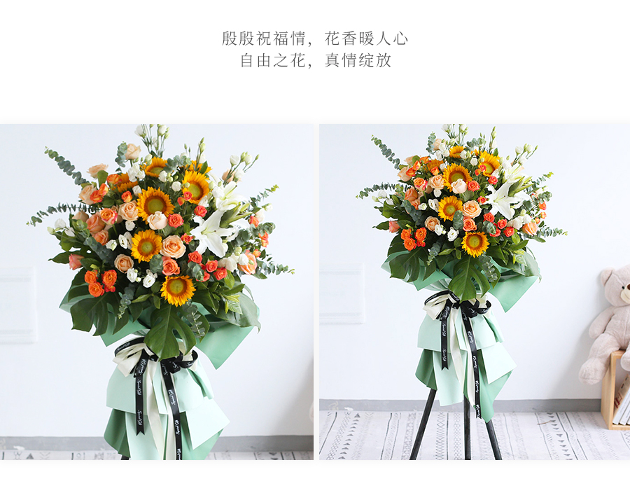 這家的花籃真是太好了,服務更是沒得說,實物花籃很美!要求印的五家公司名稱一個也沒弄錯,同事都夸這價格太驚喜!