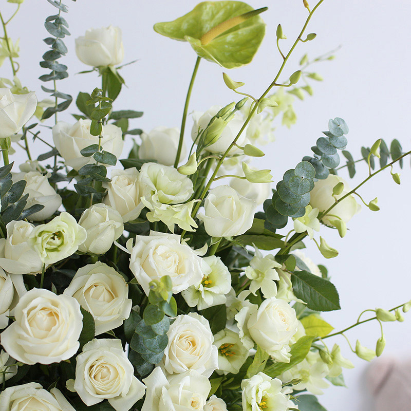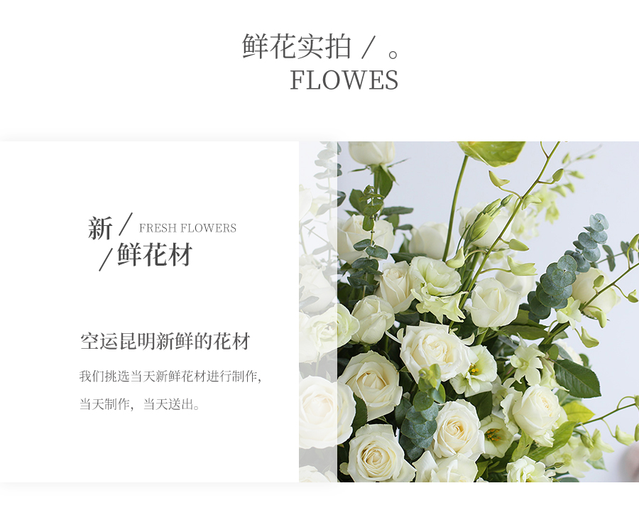 由于鮮花包扎的花藝師不同,可能在花束的形式和搭配上與圖片略有小的區(qū)別,但我們保證鮮花的主花材品種、新鮮程度、數(shù)量、顏色與說明一致,感謝您的理解。