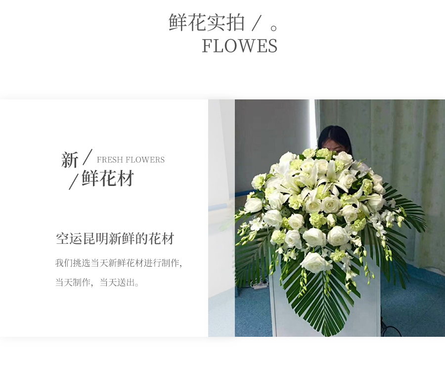 由于鮮花包扎的花藝師不同,可能在花束的形式和搭配上與圖片略有小的區(qū)別,但我們保證鮮花的主花材品種、新鮮程度、數(shù)量、顏色與說(shuō)明一致,感謝您的理解。