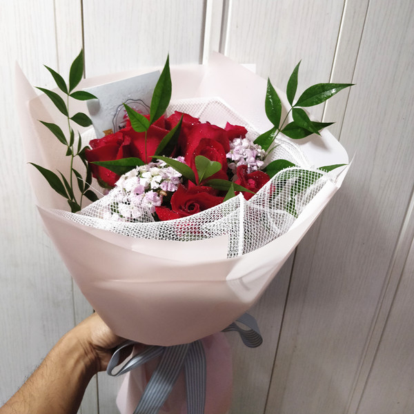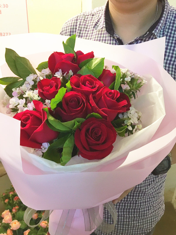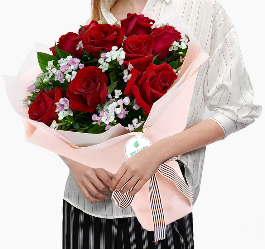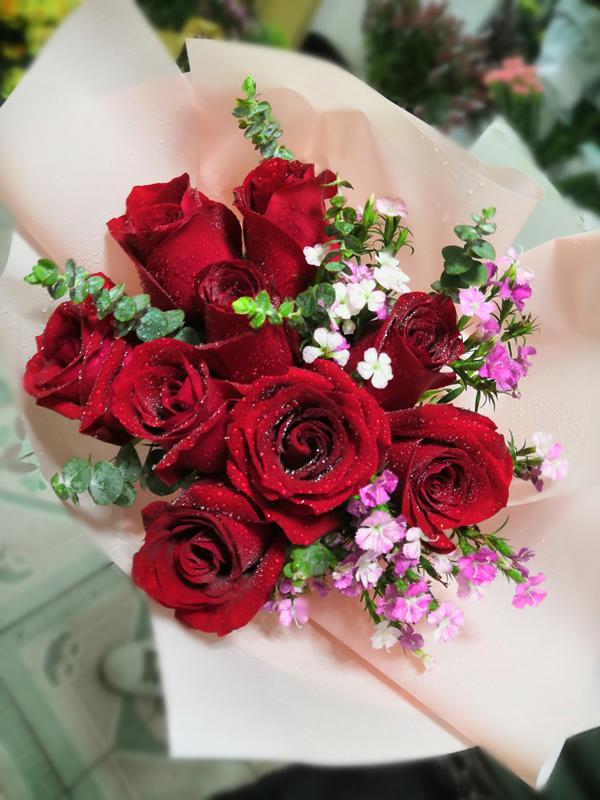今生與你相伴·9枝紅玫瑰韓式花束