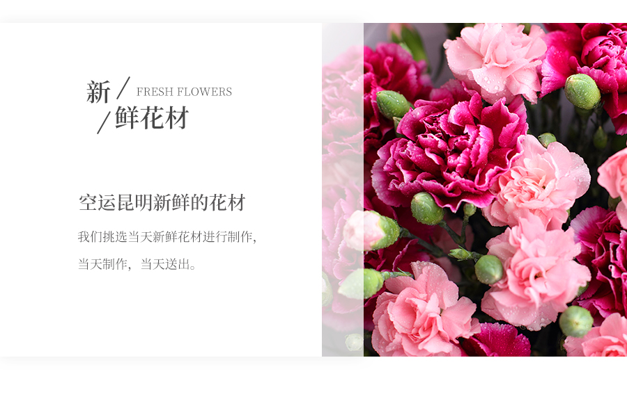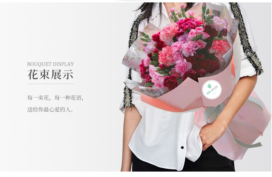 由于鮮花包扎的花藝師不同,可能在花束的形式和搭配上與圖片略有小的區(qū)別,但我們保證鮮花的主花材品種、新鮮程度、數(shù)量、顏色與說(shuō)明一致,感謝您的理解。