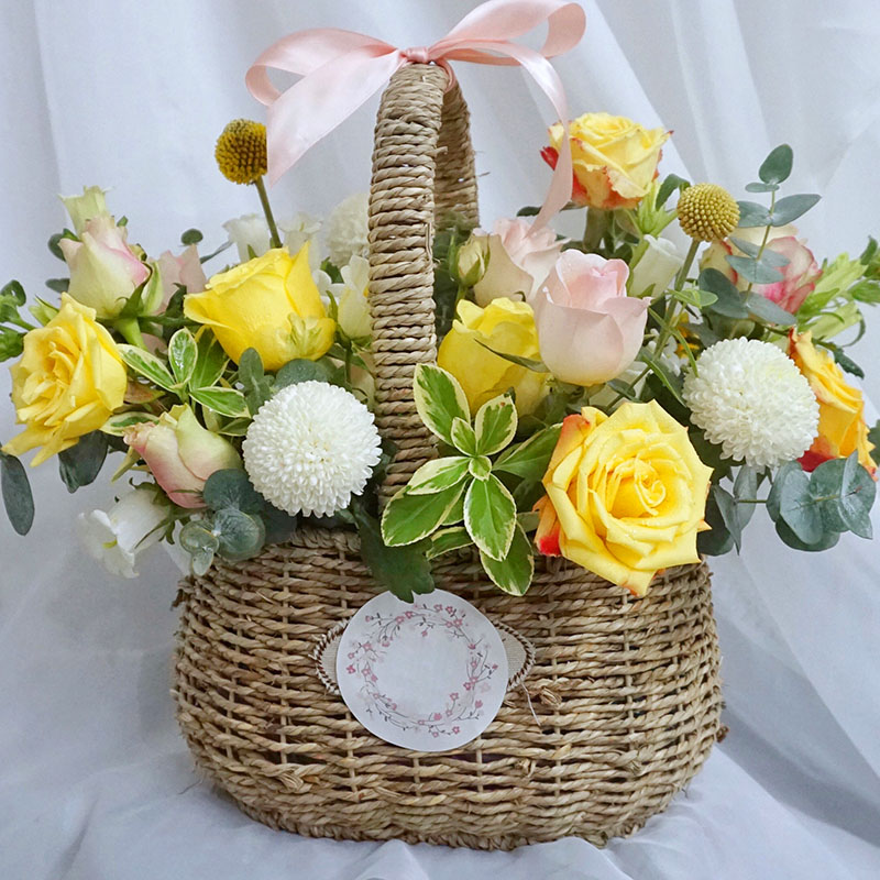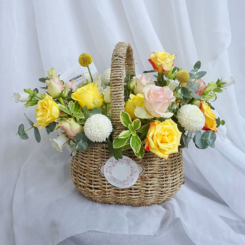 看了好多家花店,花的品種都千篇一律的,下午才找到這家,特別喜歡這款,聯(lián)系了客服,她很耐心,特別是插花的這個花籃,解決了花瓶的問題。