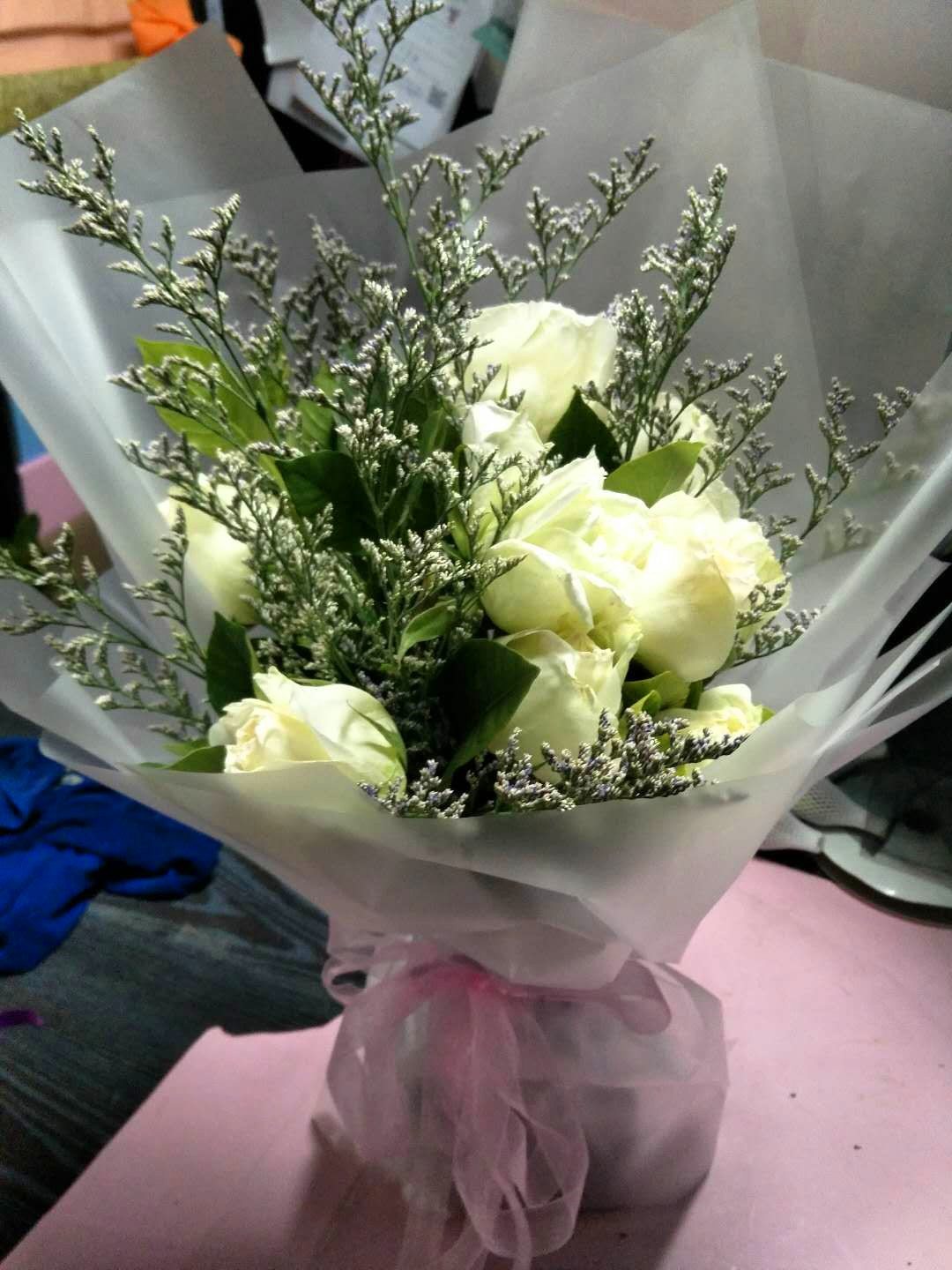 花花收到了,一看就很新鮮的花,顏色很素雅,包裝很精美,看見漂亮的花心情都美滋滋