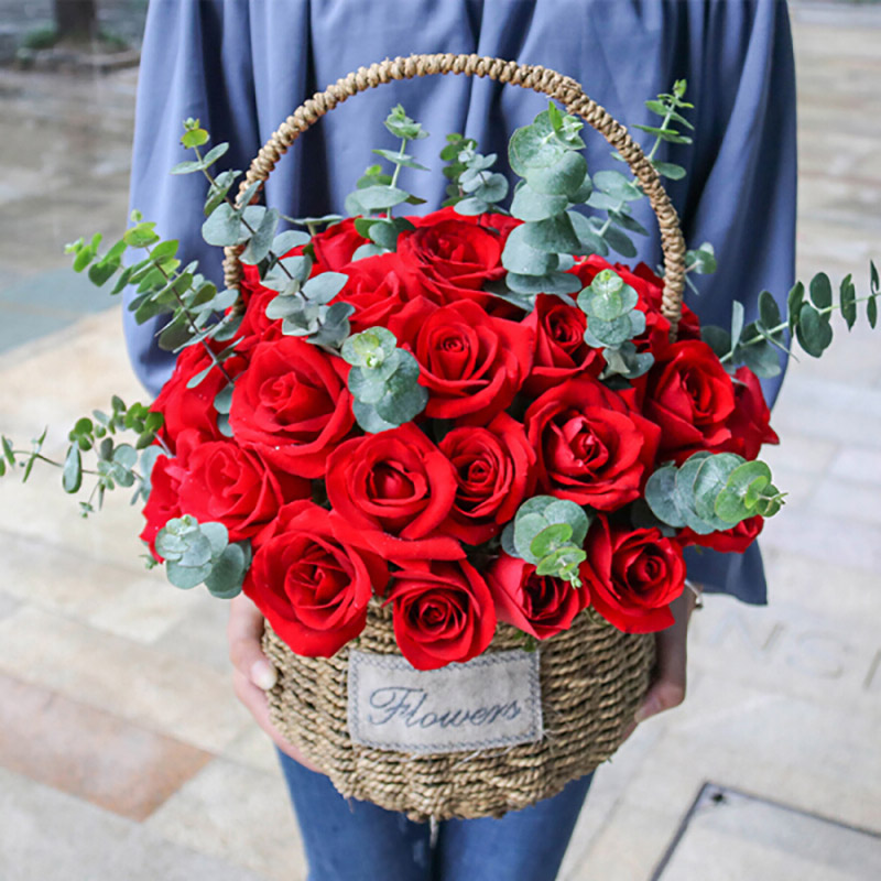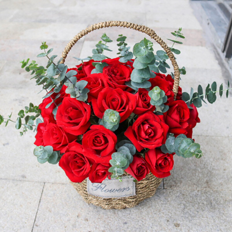 女朋友的生日,送的很及時,她剛好下課,她很喜歡鮮花,自己把花籃拆了,放在了瓶子里,保持了很久