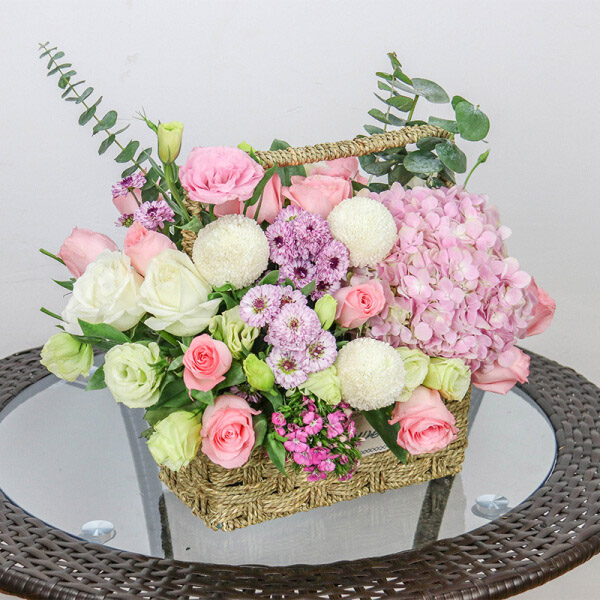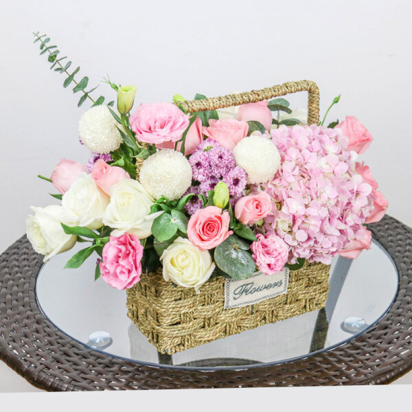 花籃一大早就收到了,質(zhì)量非常的不錯,花材都很多,插得也豐滿大氣,謝謝店家的服務(wù),有需要一定再來購買