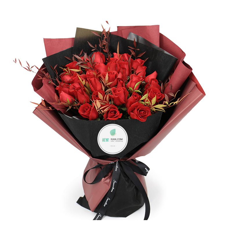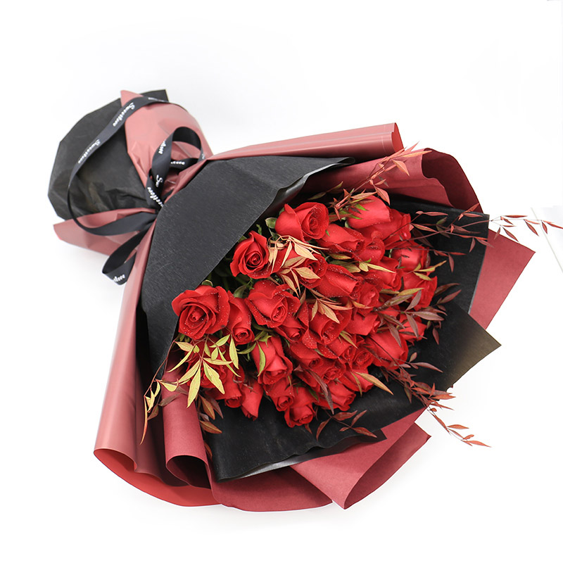 天長(zhǎng)地久·99枝黑紗紅玫瑰韓式花束