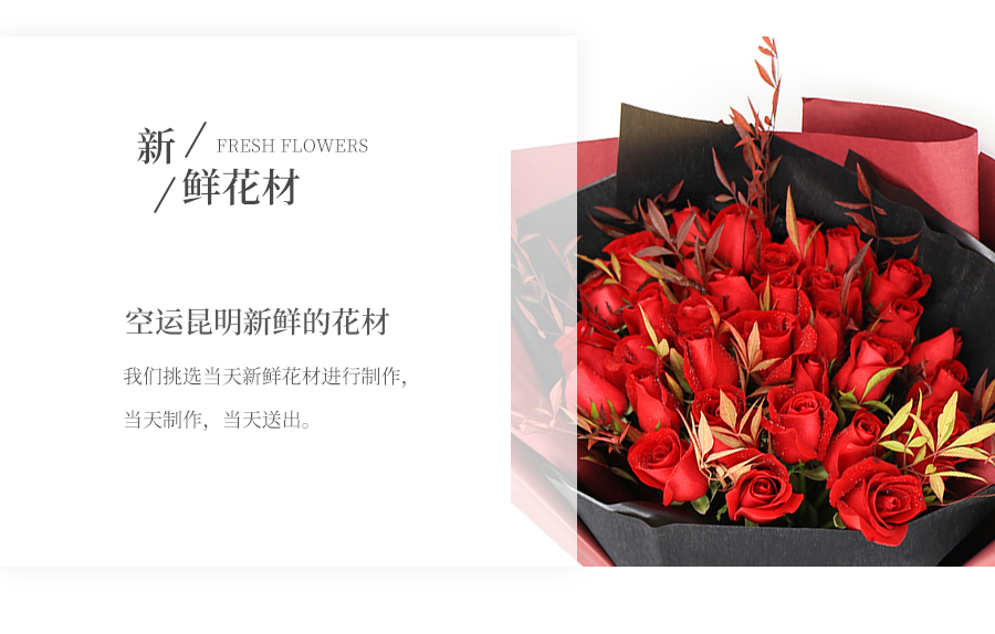 由于鮮花包扎的花藝師不同,可能在花束的形式和搭配上與圖片略有小的區(qū)別,但我們保證鮮花的主花材品種、新鮮程度、數(shù)量、顏色與說(shuō)明一致,感謝您的理解。