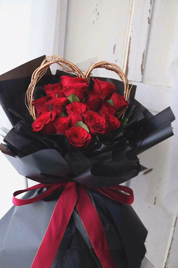天長(zhǎng)地久·99枝黑紗紅玫瑰韓式花束
