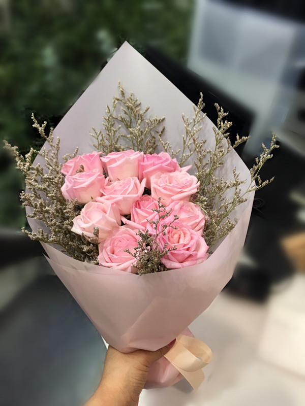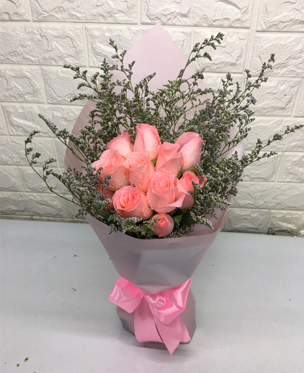 因你而幸福·9枝戴安娜粉玫瑰韓式花束