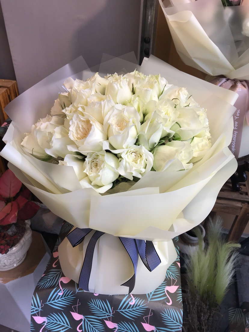由于鮮花包扎的花藝師不同,可能在花束的形式和搭配上與圖片略有小的區(qū)別,但我們保證鮮花的主花材品種、新鮮程度、數(shù)量、顏色與說明一致,感謝您的理解。
