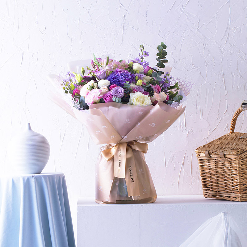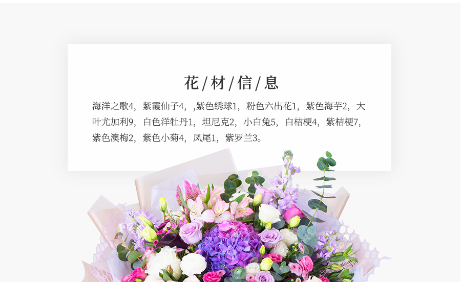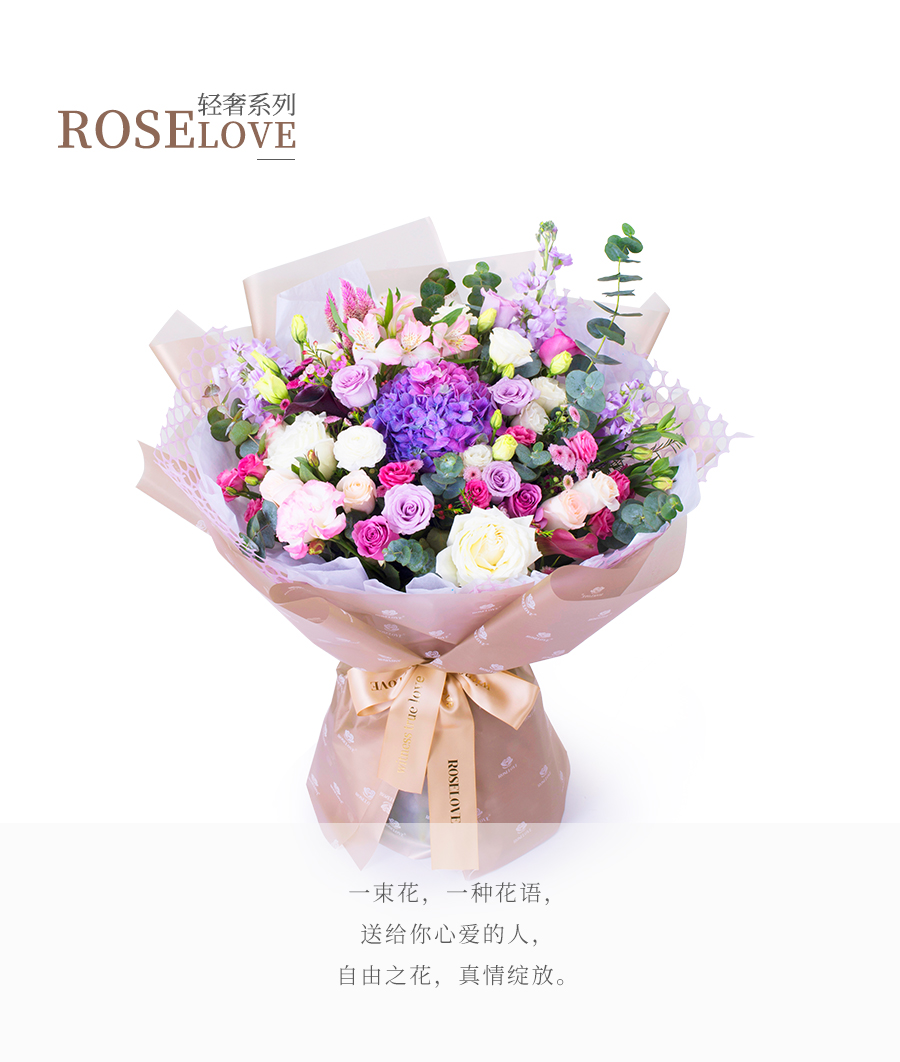 由于鮮花包扎的花藝師不同,可能在花束的形式和搭配上與圖片略有小的區(qū)別,但我們保證鮮花的主花材品種、新鮮程度、數(shù)量、顏色與說明一致,感謝您的理解。
