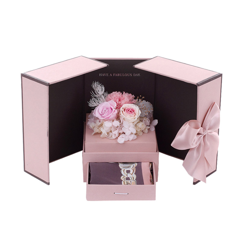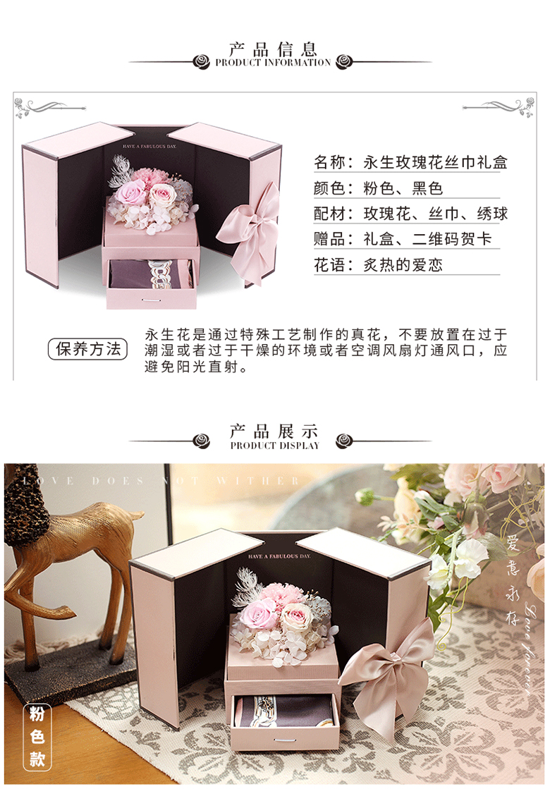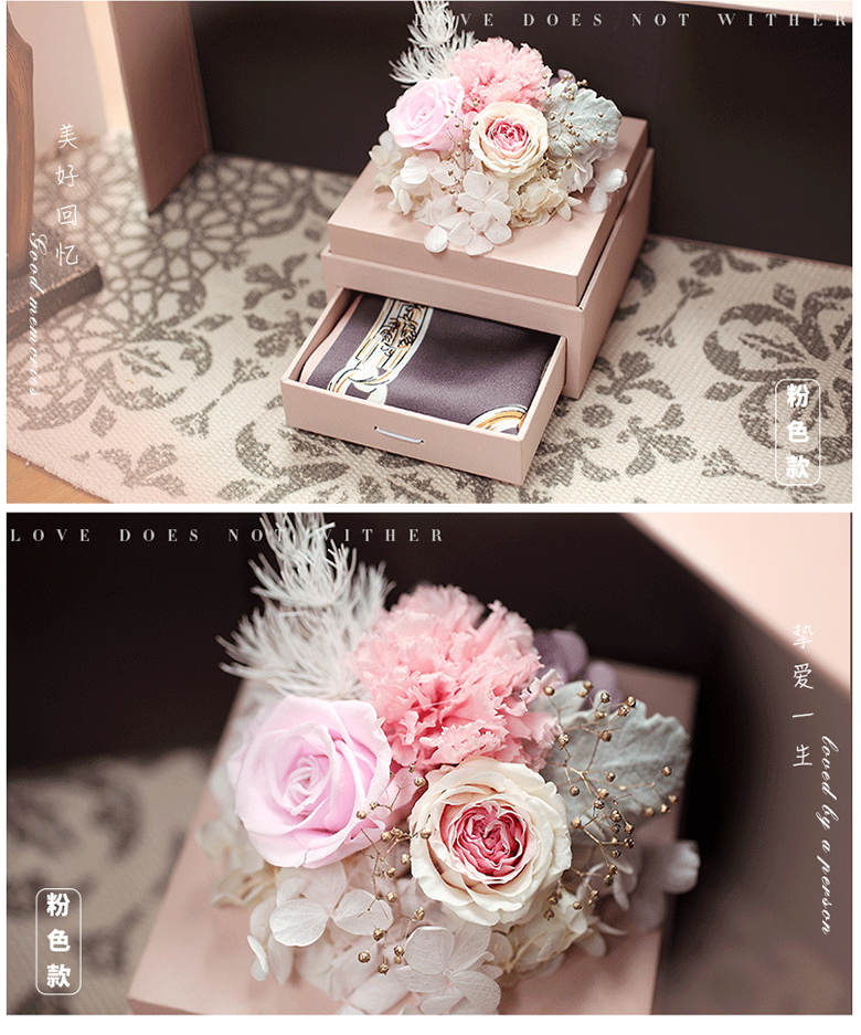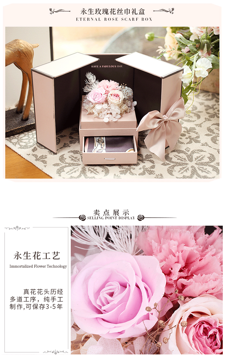 甜風(fēng)迎面來(lái)·玫瑰永生花絲巾雙開(kāi)門禮盒