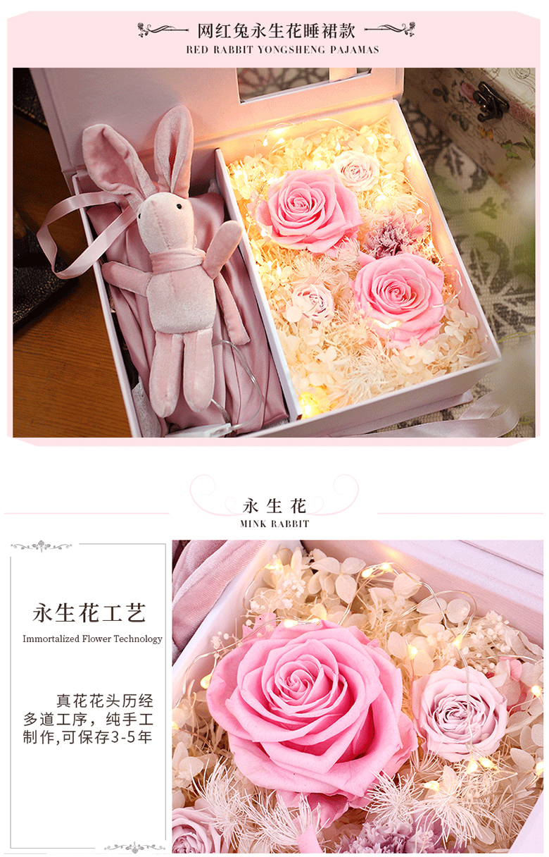 不止一次購(gòu)買(mǎi)永生花了,花還不錯(cuò),就是速度有點(diǎn)慢,我這里很遠(yuǎn)嗎?但是,包裝還是很高大上的,兔子也可愛(ài),送人可以考慮