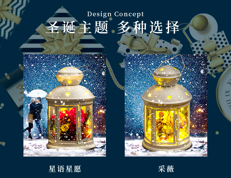 月升夜色濃·藍色妖姬發(fā)光永生花筒