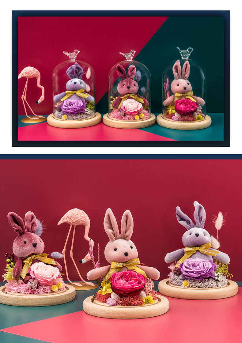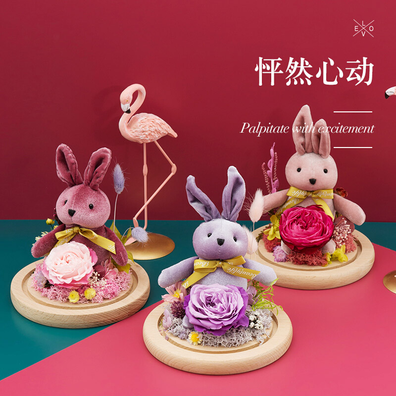 浪漫至死不渝·呆萌水貂兔永生花掛件