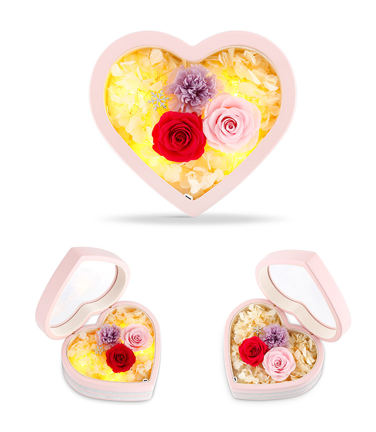 生活如詩篇·發(fā)光玫瑰永生花心形音樂盒