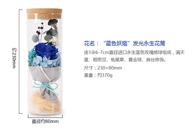 月升夜色濃·藍(lán)色妖姬發(fā)光永生花筒
